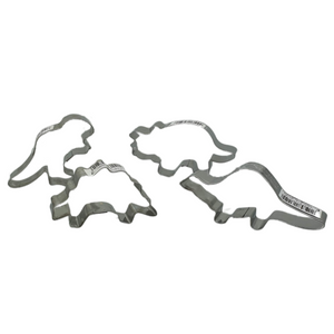 This set of dino cookie cutters are perfect for cutting out small cookies or fondant decorations for the dinosaur themed party! Made from stainless steel clean up is a breeze in the dishwasher.