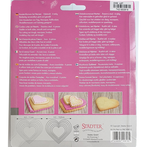 One set of heart cookie cutters with double the cutting options.  One side of the cutters has a smooth edge and the other has a corrugated or fluted edge.