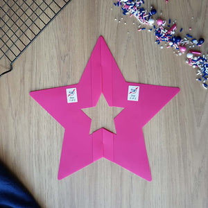 Simply place your cookie template over your rolled out cookie dough and cut around the template with our cookie dough cutting tool or a knife.